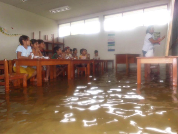 Las inundaciones han afectado el normal desenvolvimiento de las clases en los colegios situados en las zonas bajas de la región, ocasionando que se improvisen aulas en locales y domicilios particulares y que los alumnos lleguen a clases en pequeños botes llamados peque-peque. Así y todo, se dan casos como el que ilustra la siguiente foto difundida por el usuario de Twitter @PacoBardales, y que pertenece al periodista David Gonzales, tomada en el colegio N·601536, caserio Nuevo Campeon, río Itaya, Belén.