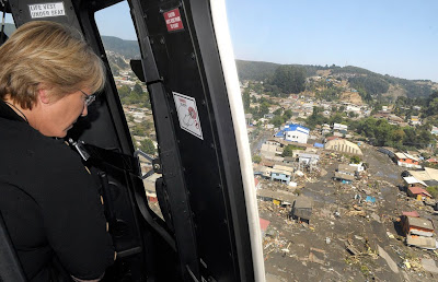 La imagen del post es de una galería del Boston.com y corresponde a la Presidenta chilena Bachelet sobrevolando la ciudad de Concepción.