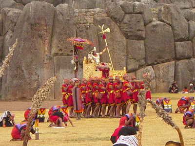 El Inti Raymi o Fiesta del Sol es una ceremonia religiosa incaica en honor a Inti, el dios-sol. El centro de la ceremonia es la fortaleza de Sacsayhuamán (a dos km. del Cusco) . Durante la época de los incas, el Inti Raymi era el más importante de los 4 festivales celebrados en el Cusco, según relata el Inca Garcilaso de la Vega, e indicaba el inicio del año así como el origen mítico del Inca. Duraba 9 días en los cuales había bailes y sacrificios. El último Inti Raymi con la presencia del Emperador Inca fue realizado en 1535. Fue prohibida en 1572 por el Virrey Francisco de Toledo al ser considera una ceremonia pagana y contraria a la fe católica, realizándose posteriormente en forma clandestina. En 1944, se efectúa una reconstrucción histórica del Inti Raymi por Faustino Espinoza Navarro. La reconstrucción se basa en la crónica del Inca Garcilaso de la Vega y sólo se refiere a la ceremonia religiosa. Desde esa fecha en adelante, la ceremonia vuelve a ser un evento público y de gran atractivo turístico.