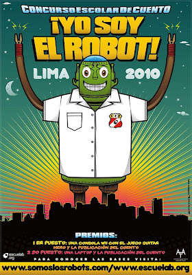 El domingo 1 de agosto se lanzará el concurso de cuentos en el marco de la Feria Internacional del Libro de Lima, con la Conferencia: Concurso de Cuentos para Escolares “Yo soy un robot”, en la que participaran: Jorge Villacorta, Director de Escuelab y Luis Cermeño, residente de dicha institución. Interesados darse un saltito.
